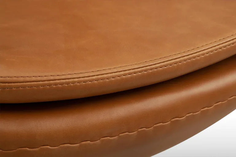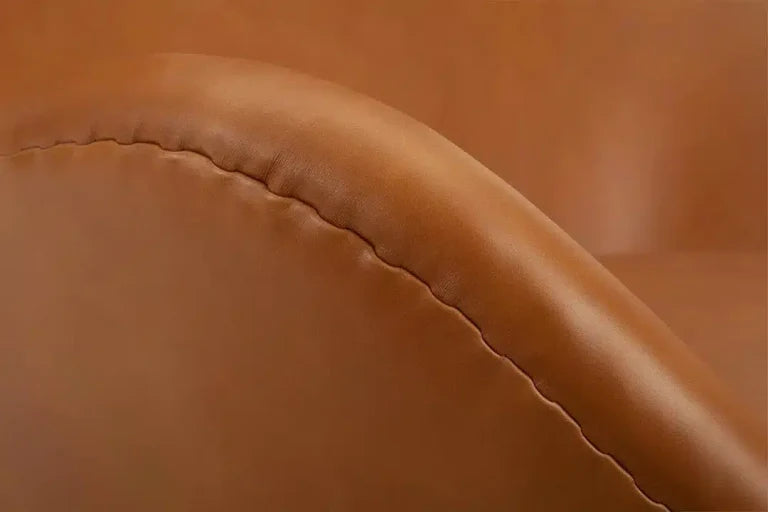 Hand-selected aniline leather with a matte finish and double-stitched seams provides breathable comfort and exceptional durability. It ages beautifully, offering an elegant, timeless look that elevates modern spaces with its refined texture and lasting appeal.