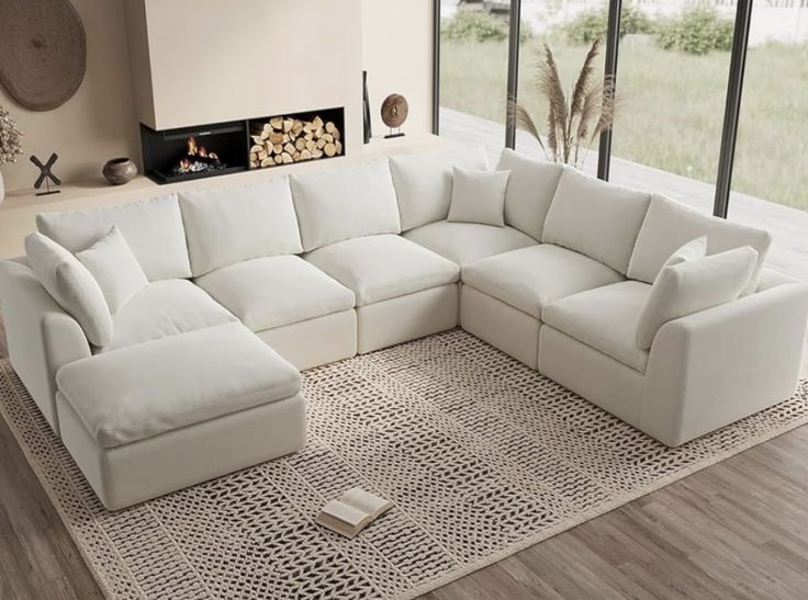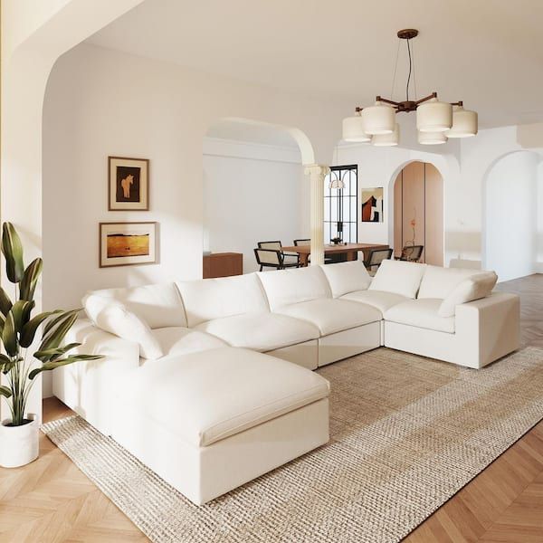 A sleek and inviting modular sofa designed for modern living. Upholstered in soft white fabric, it offers generous comfort and clean lines, perfect for creating an elegant and relaxed living space.