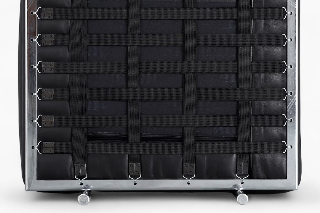 The structure relies on precisely welded stainless steel supports combined with high-tension webbing to deliver consistent, long-lasting comfort. This engineered foundation distributes weight evenly, preserving the seat’s shape over time. Discreet protective caps ensure stability while safeguarding your floors from everyday wear.