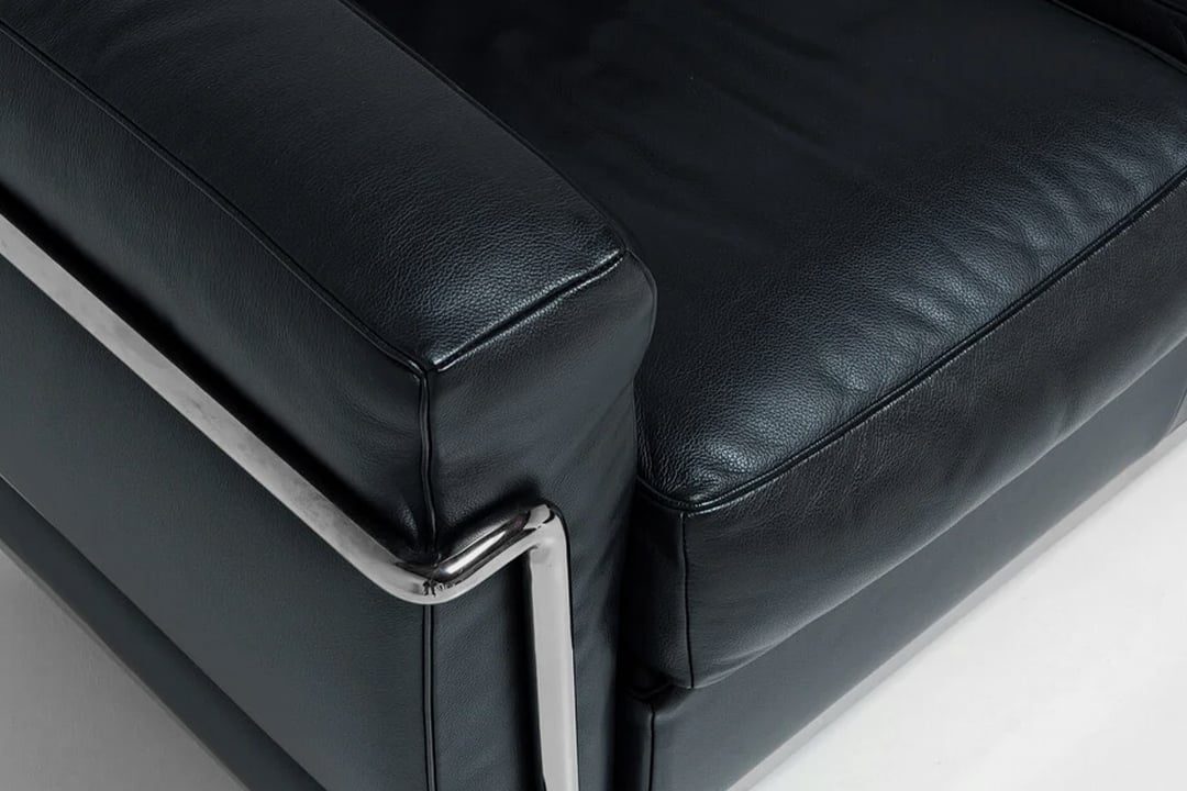 Its generously padded cushions, upholstered in premium Italian leather, deliver unmatched comfort while maintaining a sleek, sculptural look. Whether in a living room, office, or boutique space, the LC2 becomes an instant focal point of style and sophistication.