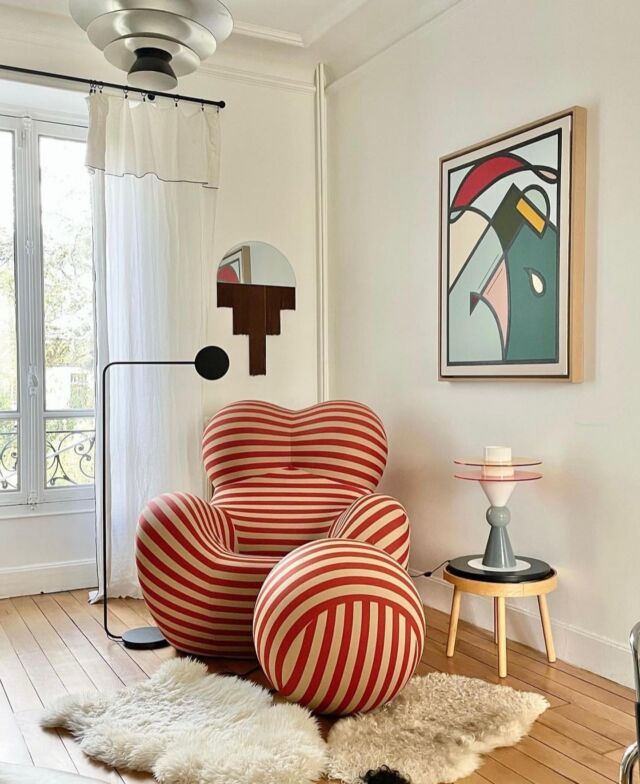 A bold sculptural seat inspired by radical Italian design. Its organic curves and graphic stripes transform comfort into a statement — made to be lived in, admired, and remembered.